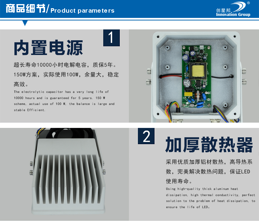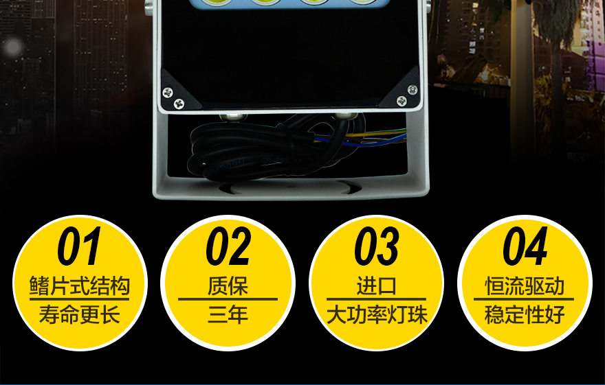 ★鋁合金壓鑄外殼,加厚鰭形散熱后蓋,散熱好,壽命長;