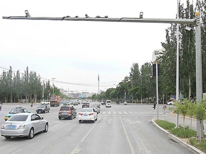 道路監控桿也稱監控桿與監控立桿,立桿要求攝像機離地面高度一般不低于5米,挑臂長度3~5米,立桿下端管徑應在220 mm±10mm、上端管徑應在120 mm±5mm,管壁厚度應≥6mm,表面防腐、抗臺風。立桿基礎深度不低于1.5米,基礎直徑大于1米,采用混凝土灌筑,以確保立桿的牢固度。