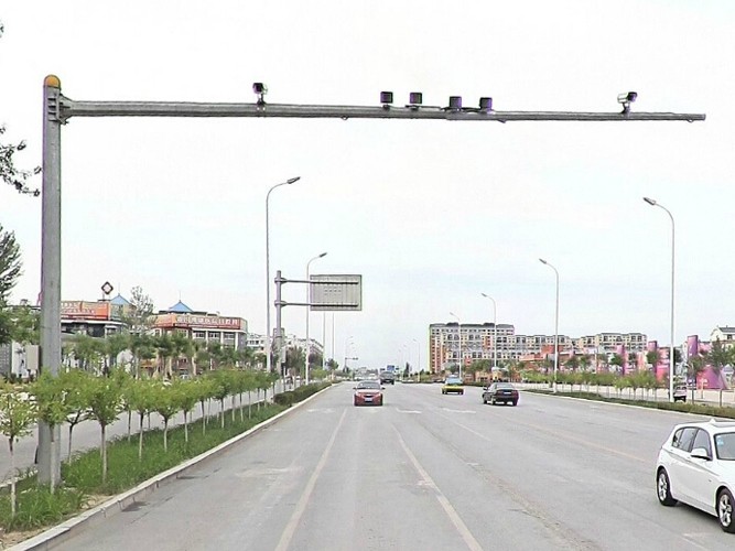 垂直度檢驗(yàn):電子警察監(jiān)控立桿直立后,使用經(jīng)緯儀對(duì)桿的兩向垂直度作檢驗(yàn),垂直度偏差1.0≤%。